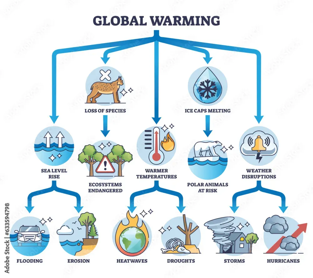Global warming impacts such as heat waves, sea-level rise, and stronger storms are driving climate policy updates and decarbonization policies. These impacts push governments to deploy carbon pricing, accelerate renewable energy, upgrade grids, and invest in resilience to reduce emissions and protect communities.